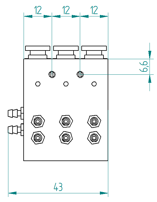 Ventil- Ausgang (Anschlüsse A/B): mit Nippel H022 (für Schlauch außen 3mm / innen 1,5mm)