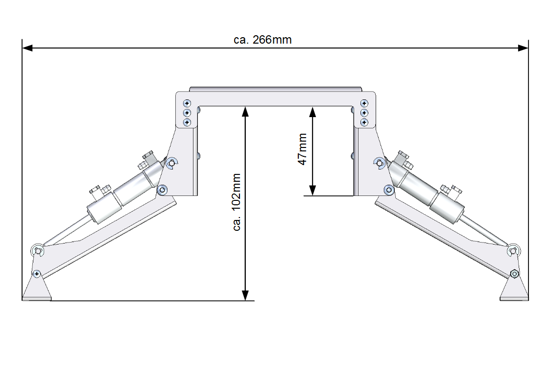 Auf Grund der kleineren Hydraulikzylinder und der Hebelverhältnisse hat diese Abstützung weniger Kraft, wie unsere "normale" Abstützung |