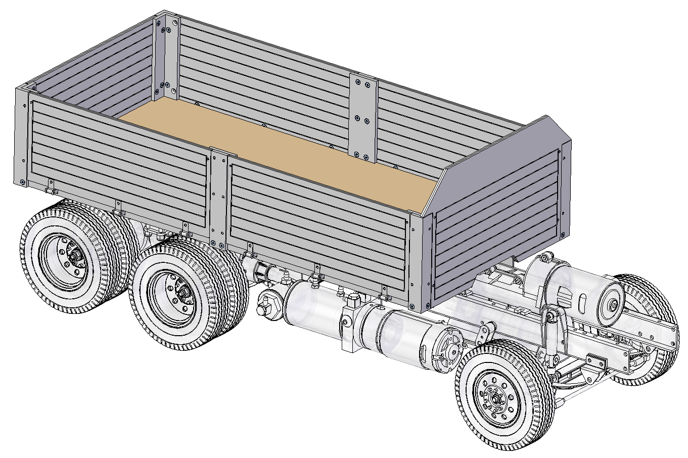 Der Pritschenaufbau beinhaltet unter anderem einen Hilfsrahmen,